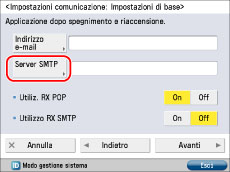 Selezionare [Off] per <Utiliz. RX POP> → [On] per <Utilizzo RX SMTP> → [Avanti].