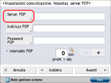 Premere [Avanti] → specificare il server POP → premere [Avanti].