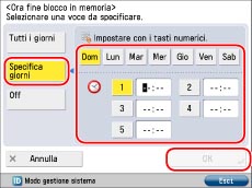 Se si seleziona [Specifica giorni], specificare un giorno della settimana (da [Dom] a [Sab]) → selezionare un numero (da [1] a [5]).