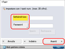 Premere [Impost. dettagli] → immettere [Sottoindirizzo] e [Password] → [Avanti].
