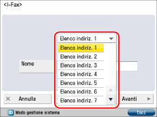L'indirizzo I-fax impostato viene registrato nell'elenco indirizzi qui selezionato.