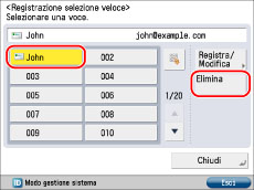 Le seguenti icone vengono visualizzate per indicare il tipo di destinazione registrato per i pulsanti di selezione veloce in cui è già stata registrata una destinazione: