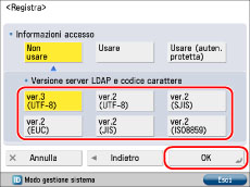 Selezionare <Versione server LDAP e codice carattere> → premere [OK].