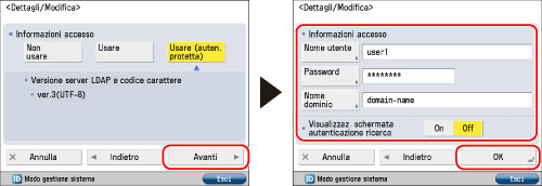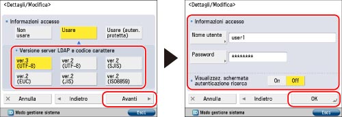 Selezionare <Versione server LDAP e codice carattere> → premere [Avanti].