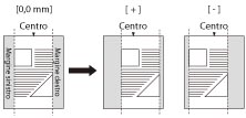 se si aumenta il valore di impostazione, l'immagine viene spostata verso il basso (Y) sulla carta. Diminuendo il valore, l'immagine viene spostata verso l'alto (Y) quando viene stampata.