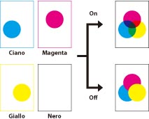 Se si seleziona un'impostazione diversa da [Nessuno] per [Profilo simulazione CMYK] (Vedere "Profilo simulazione CMYK".), la sovrastampa non viene applicata.