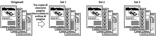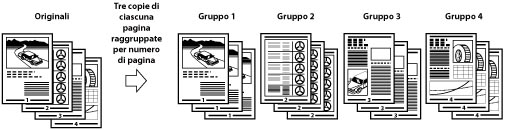 Quando vengono stampate più copie di un originale, è possibile raggruppare ogni pagina insieme.