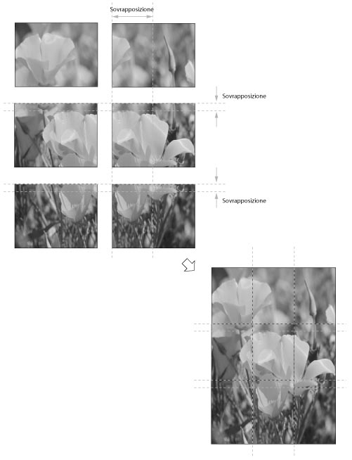 Le dimensioni indicate nella tabella in "Calcolo del numero di fogli in cui suddividere l'immagine in base al rapporto di riproduzione" servono solo come indicazioni. Il rapporto effettivo di riproduzione potrebbe variare rispetto a quanto riportato nella tabella.