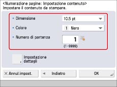 Specificare le impostazioni di stampa per i numeri di pagina.