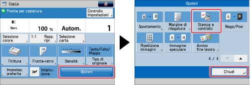 Posizionare gli originali sul vetro di lettura. Non è possibile copiare utilizzando il modo Stampa e controllo con gli originali impostati nell'alimentatore.