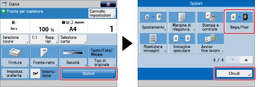 Selezionare [Opzioni] → [Nega/Posi] → [Chiudi].