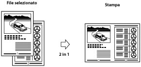 È possibile ridurre automaticamente un file di 2, 4, 6, 8, 9, o 16 pagine per adattarlo ad un determinato formato carta.