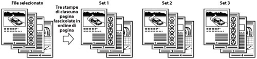 Quando vengono eseguite più stampe di un file, è possibile fascicolare le stampe in copie separate.