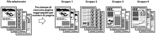 Quando vengono eseguite più stampe di un file, è possibile raggruppare ogni pagina insieme.