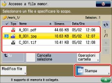 In questa sezione viene riportata, come esempio, la procedura per la stampa di file JPEG e TIFF memorizzati nel supporto memoria.