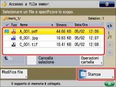In questa sezione viene riportata, come esempio, la procedura per la stampa di file memorizzati nel supporto memoria.