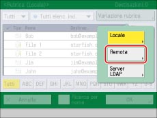 [Variazione rubrica] viene visualizzato solo quando sono registrati sia la rubrica remota che il server LDAP. Se sulla macchina è registrata soltanto la rubrica remota, viene visualizzata l'opzione [A rubrica remota].
