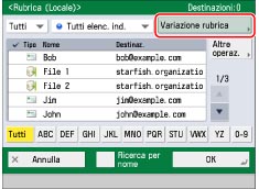 [Variazione rubrica] viene visualizzato solo quando sono registrati sia la rubrica remota che il server LDAP. Se sulla macchina è registrato solo il server LDAP, viene visualizzato [A server LDAP].