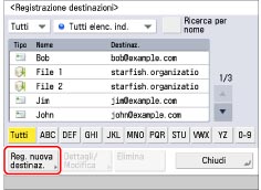 Premere [Scansione e invio] → [Rubrica].