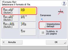 Se [Da formato PDF a formato PDF/A] è impostato su 'On', vedere "Formato PDF come PDF/A".