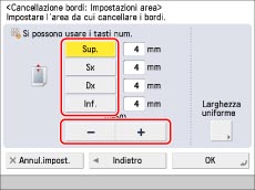 Selezionare i bordi desiderati → utilizzare [-] o [+] per impostare le rispettive ampiezze del bordo da cancellare.