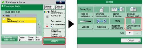 Specificare la destinazione → selezionare [Opzioni] → [Cancellazione bordi].