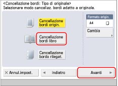 Selezionare [Cancellazione bordo rilegat.] → premere [Avanti].