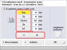 Utilizzare [-] o [+] per impostare l'ampiezza del bordo da cancellare.