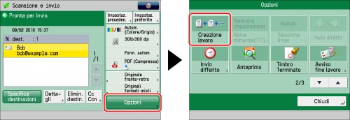 Il numero massimo di pagine che possono essere inviate insieme è 999. Quando si utilizza il modo Creazione lavoro, viene visualizzato un messaggio che chiede all'operatore se desidera trasmettere il lavoro dopo che sono state acquisite 999 pagine. Se si conferma l'invio del lavoro, verranno trasmesse le 999 pagine acquisite. Se invece si annulla l'invio del lavoro, le pagine acquisite non verranno trasmesse.