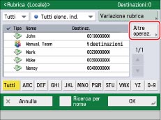 Per selezionare più destinazioni, selezionare l'elenco indirizzi di destinazione → [OK]. Se [Gestione numeri accesso rubrica] è impostato su 'On', selezionare [N. di accesso].
