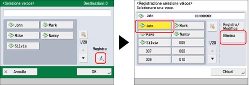 Selezionare [Registra] → selezionare un pulsante di selezione veloce da eliminare → [Elimina].