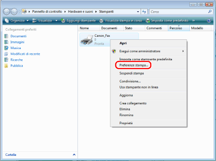 ] (Fare clic per iniziare) → [Dispositivi e stampanti].Per Windows XP Professional/Server 2003, fare clic su [Avvio] → [Stampanti e fax].