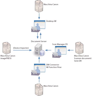 I documenti importati con iW Scan Manager DS possono essere rilasciati a Document Server, che rappresenta il sistema principale di gestione dei documenti della serie iW e utilizzati in diversi ambiti aziendali.