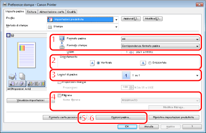 Per informazioni su come visualizzare la schermata del driver della stampante, vedere "Stampa" o "Configurazione delle impostazioni di stampa predefinite".