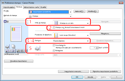 Per informazioni su come visualizzare la schermata del driver della stampante, vedere "Stampa" o "Configurazione delle impostazioni di stampa predefinite".