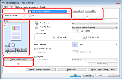 Le impostazioni configurate in ogni scheda vengono visualizzate nell'anteprima.