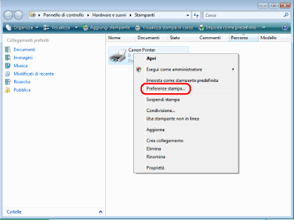 ] (Fare clic per iniziare) → [Dispositivi e stampanti].Per Windows XP Professional/Server 2003, fare clic su [Avvio] → [Stampanti e fax].