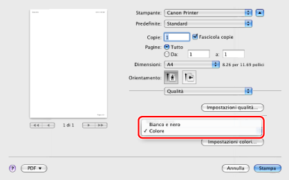 La visualizzazione, potrebbe variare a seconda del sistema operativo, del tipo e della versione dal driver di stampa.