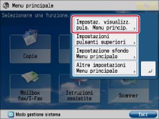 Selezionare [Impostaz. visualizz. puls. Menu princip.].