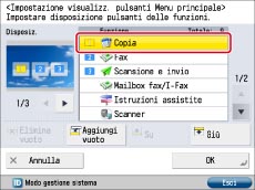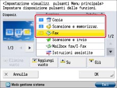 Questa sezione descrive come impostare i tre tipi di tasti: [Copia], [Scansione e memorizzaz.] e [Fax], affinché vengano visualizzati nel pannello digitale nel suddetto ordine.