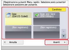 Registrando le impostazioni delle funzioni utilizzate di frequente, come Copia, Scansione e invio e Scansione e memorizzazione nel Menu rapido, è possibile utilizzare tali impostazioni anche su un'altra macchina.