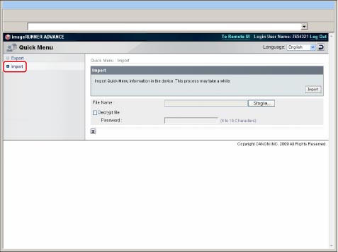 Ad esempio, se l'indirizzo IP della macchina è "192.168.11.55," digitare l'URL "http://192.168.11.55:8000/custommenu".