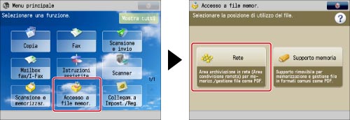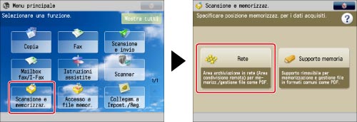 Premere [Scansione e memorizzaz.] → [Rete].