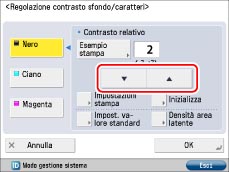 Confrontare la stampa di esempio e la copia, quindi impostare il valore per la stampa di esempio migliore per [Contrasto relativo] utilizzando o .