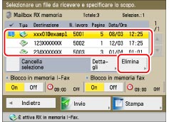 Per annullare la selezione di tutti i documenti, selezionare [Cancella selezione] ([Cancella selezione] viene sostituito da [Seleziona tutti (max. 32 file)].)