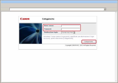 Se Default Authentication e Gestione ID divisione sono impostate, introdurre l'ID divisione e la password per accedere.