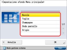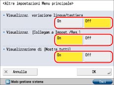 nella parte superiore destra, viene visualizzata la seguente schermata. Selezionare le impostazioni nella schermata visualizzata e impostare la schermata Menu principale da visualizzare.