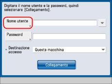 alfabetico] o [ alfabetico] per modificare l'ordine delle voci nell'elenco a comparsa.Indipendentemente dalle voci visualizzate nell'elenco a comparsa <Destinazione accesso>, il dominio che appartiene alla macchina viene visualizzato in cima all'elenco e [Questa macchina] viene visualizzato in fondo all'elenco.
