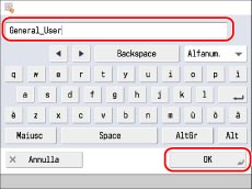 Per istruzioni su come registrare i dati utente per il sistema di autenticazione utente Local Device Authentication di SSO-H, vedere "Registrazione e modifica dei dati utente per Local Device Authentication".
