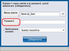 Anche se al termine delle operazioni si dimentica di eseguire la disconnessione, allo scadere del tempo specificato viene rivisualizzata automaticamente la schermata di immissione del nome utente e della password. (Vedere "Intervallo ripristino automatico".)